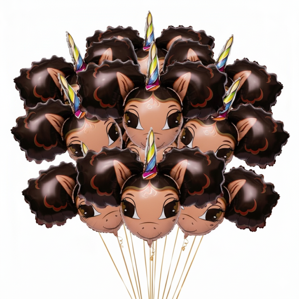 Are you ready for the world's most beautiful jumbo unicorn foil balloon?  Featuring Alexis, one of your favorite black unicorns, this ballon is sure to be a show stopper at your next party!  Use this one of a kind balloon in both air-filled and helium filled décor. It's perfect for an ornate balloon bouquet, or can be used as décor at a party. This balloon stands out whatever the occasion!