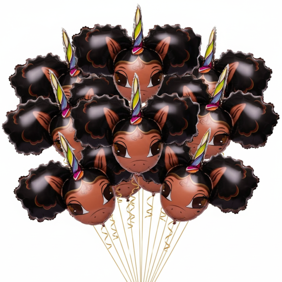 Are you ready for the world's most beautiful jumbo unicorn foil balloon?  Featuring Chloe, one of your favorite black unicorns, this ballon is sure to be a show stopper at your next party!  Use this one of a kind balloon in both air-filled and helium filled décor. It's perfect for an ornate balloon bouquet, or can be used as décor at a party. This balloon stands out whatever the occasion!