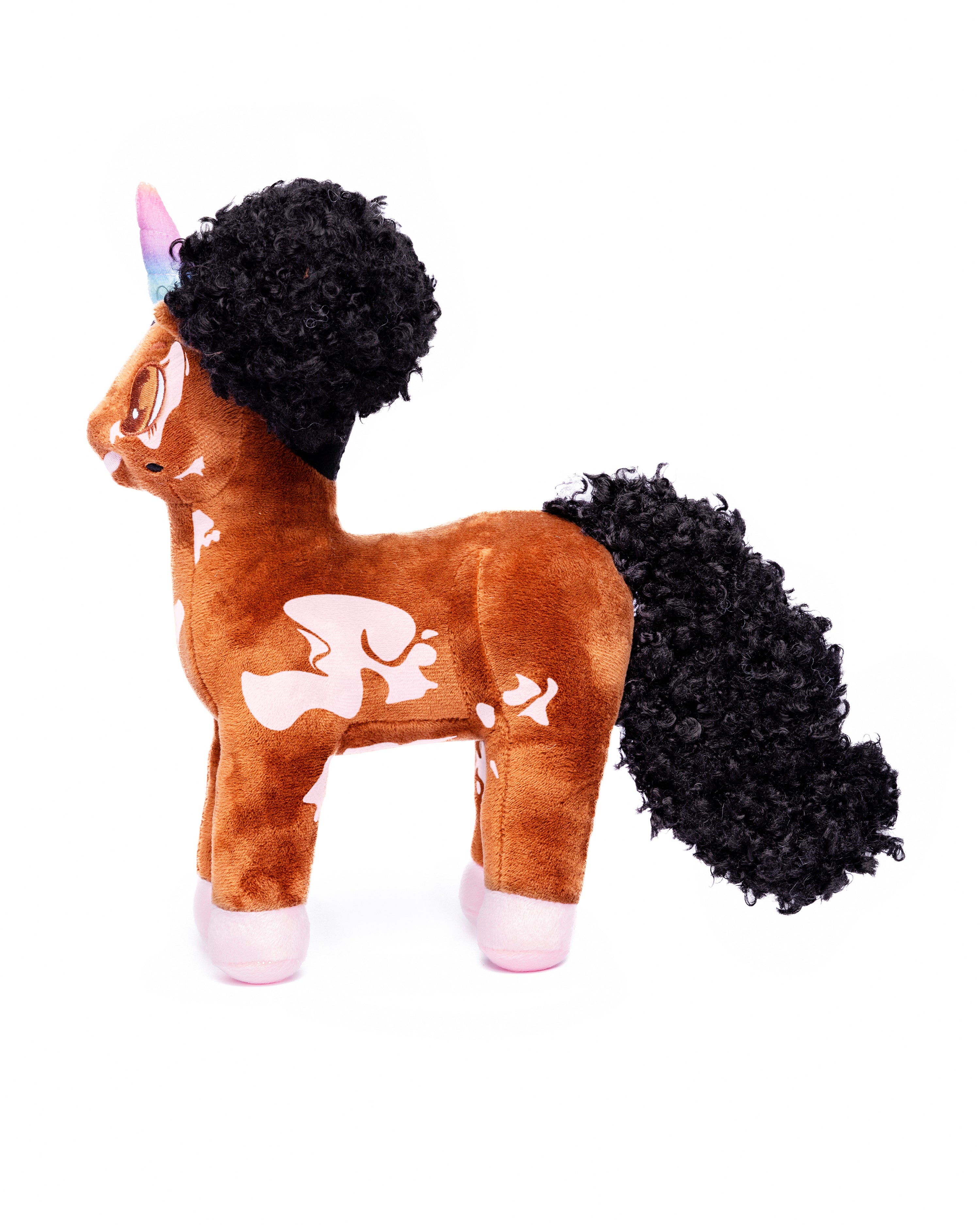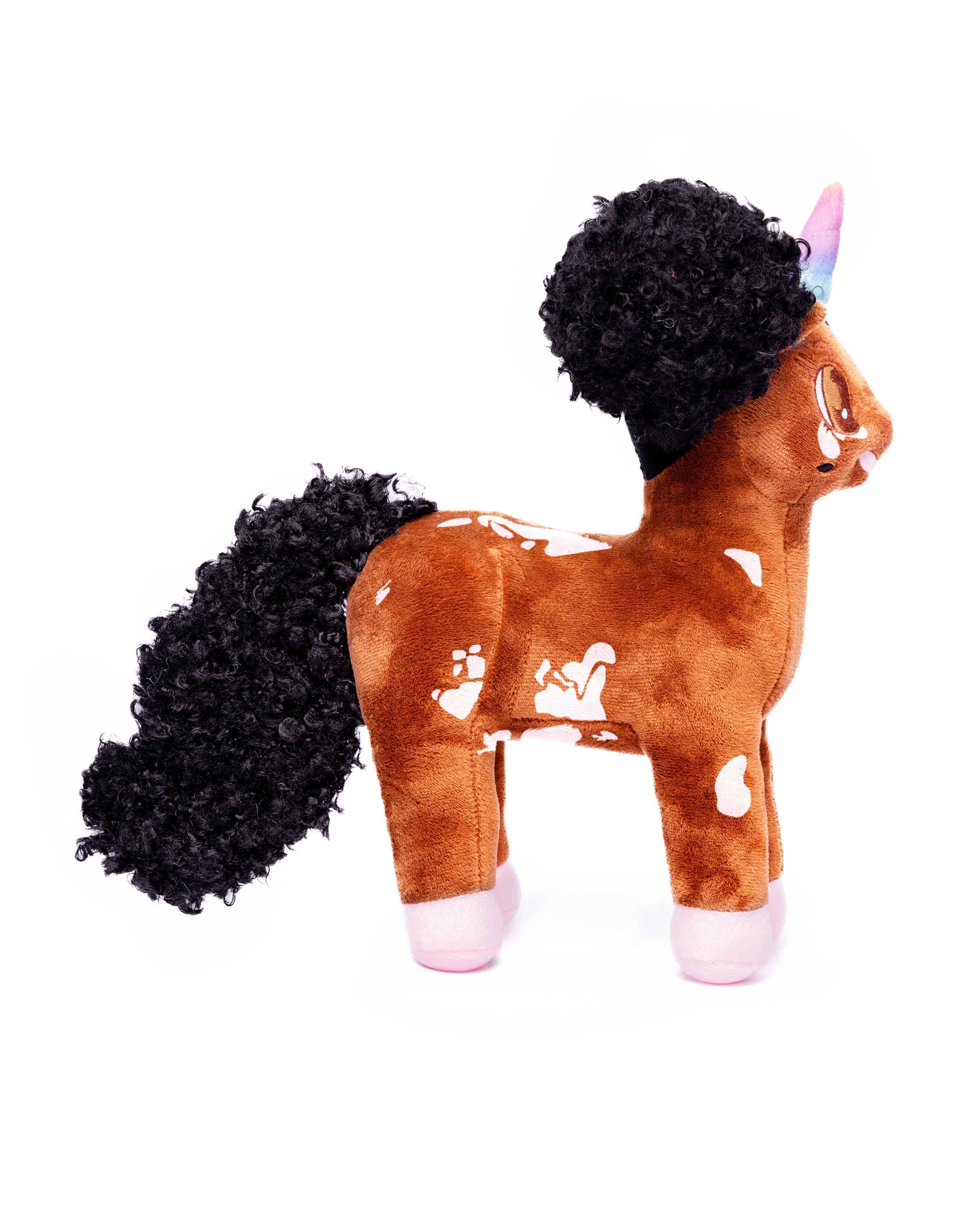 Destiny, Vitiligo Unicorn Plush Toy with Afro Puffs - 12 inch
