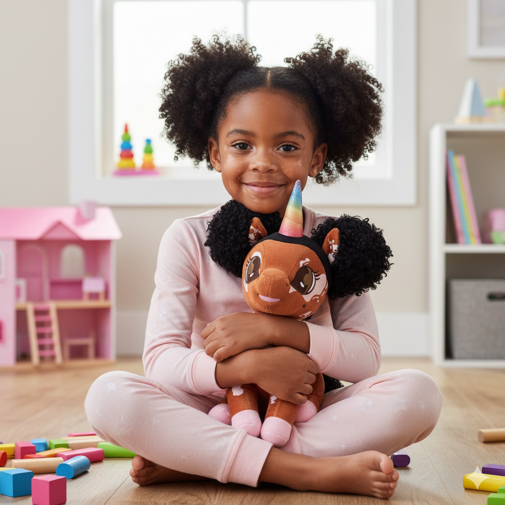 Malaysia, Vitiligo Unicorn Plush Toy with Afro Puffs - 15 inch