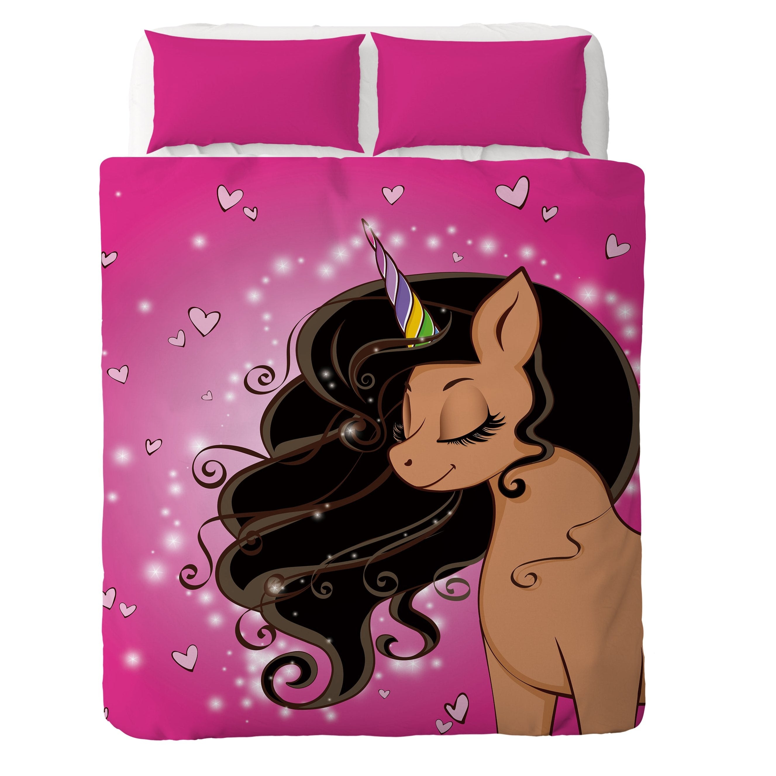 Sparkle Magic Oversized Unicorn Blanket -- Light Brown with Black Hair in Bubblegum Pink