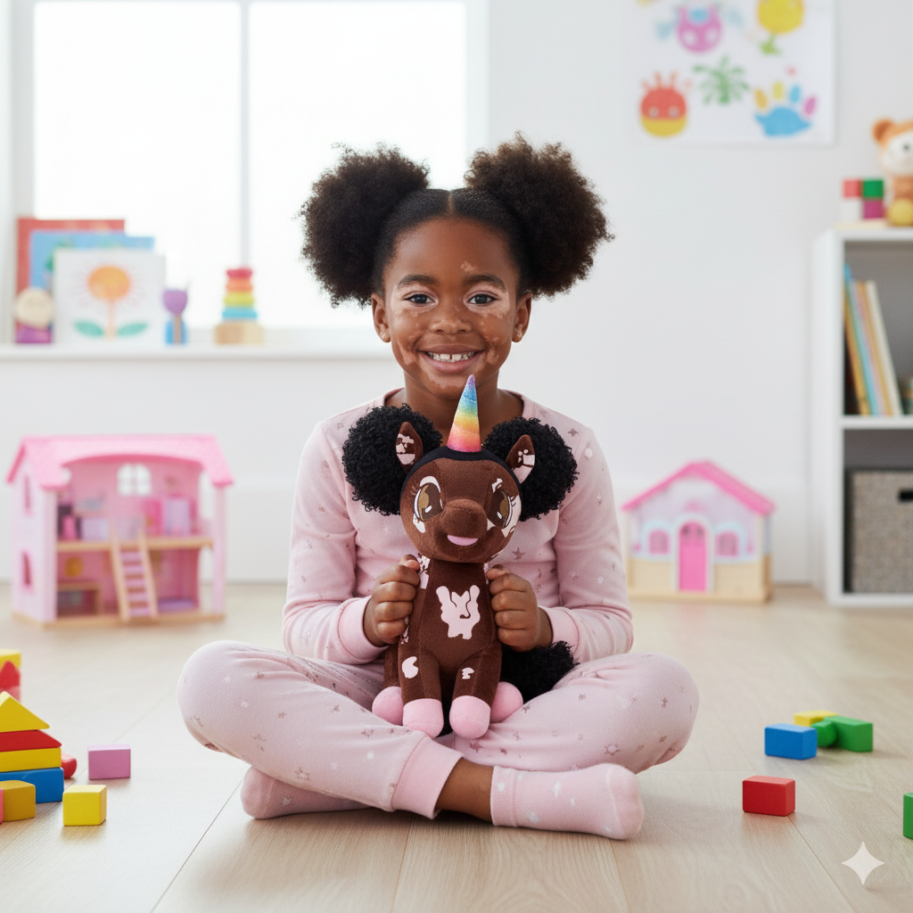 Tianca, Vitiligo Unicorn Plush Toy with Afro Puffs - 15 inch